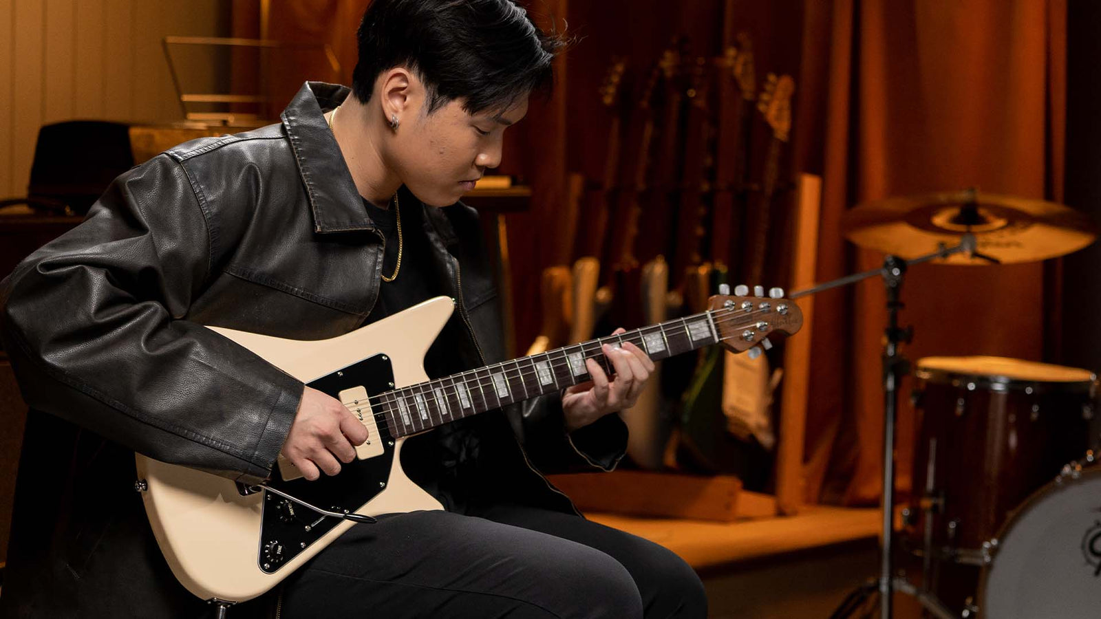 Featuring a playful body shape, the Albert Lee P90 comes in two vintage-inspired finishes: Sherwood Green with classic white dot markers or dual-tone Vintage Cream with white pearloid block inlays.