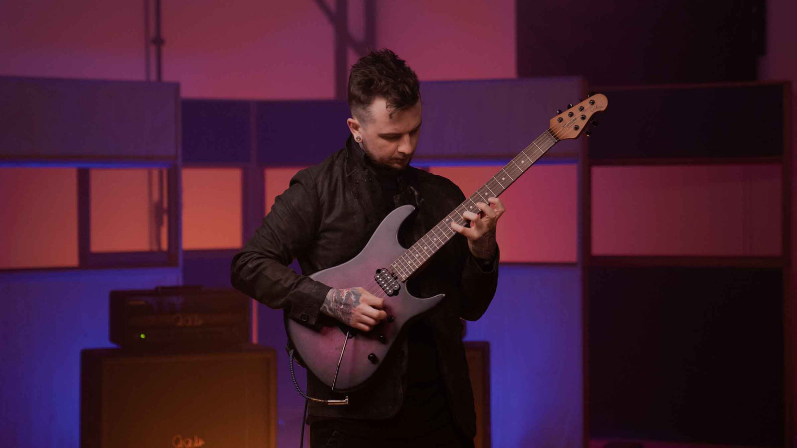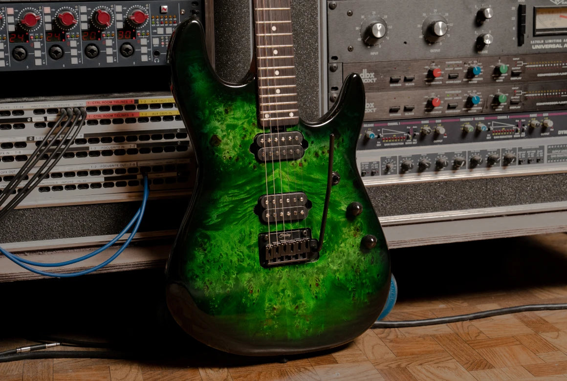 Built for high-performance playing, the smooth roasted maple neck, rosewood fingerboard, locking tuners, and modern tremolo support fast, expressive technique.