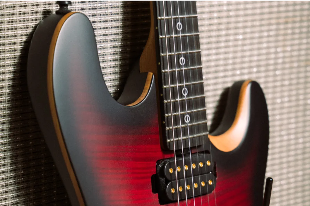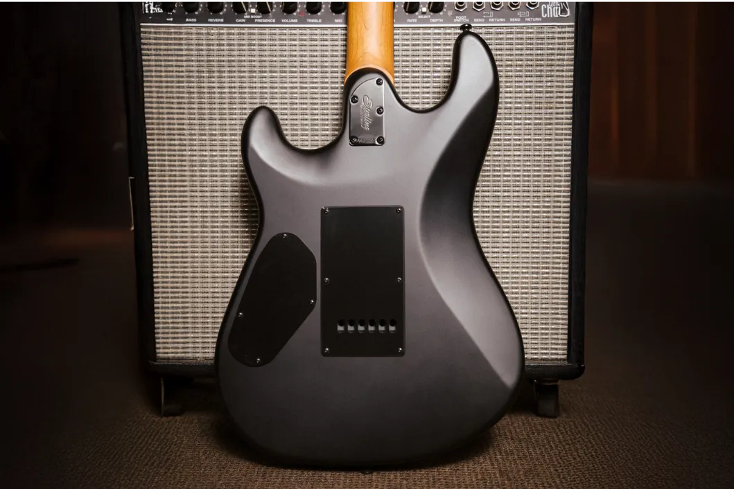 We refined the already perfectly balanced, double-cutaway Sabre and enhanced it with custom touches from Rabea, including a thicker tapered neck and recessed carve on the front and back lower horn for effortless access to all 22 frets.