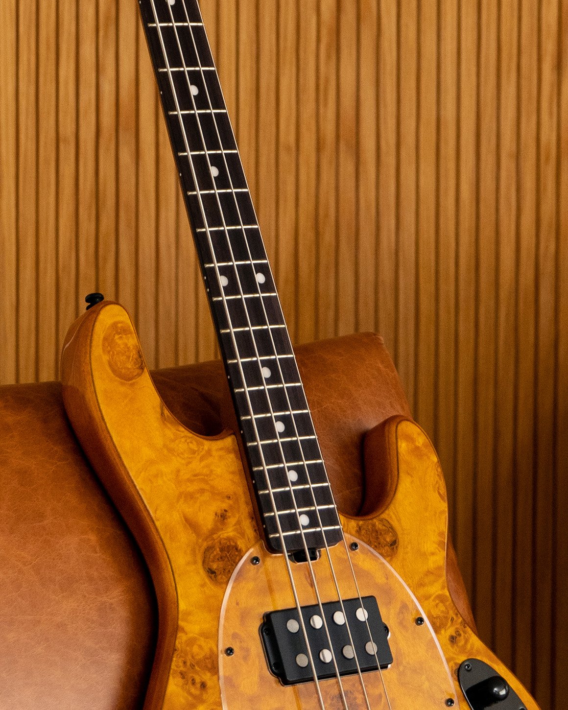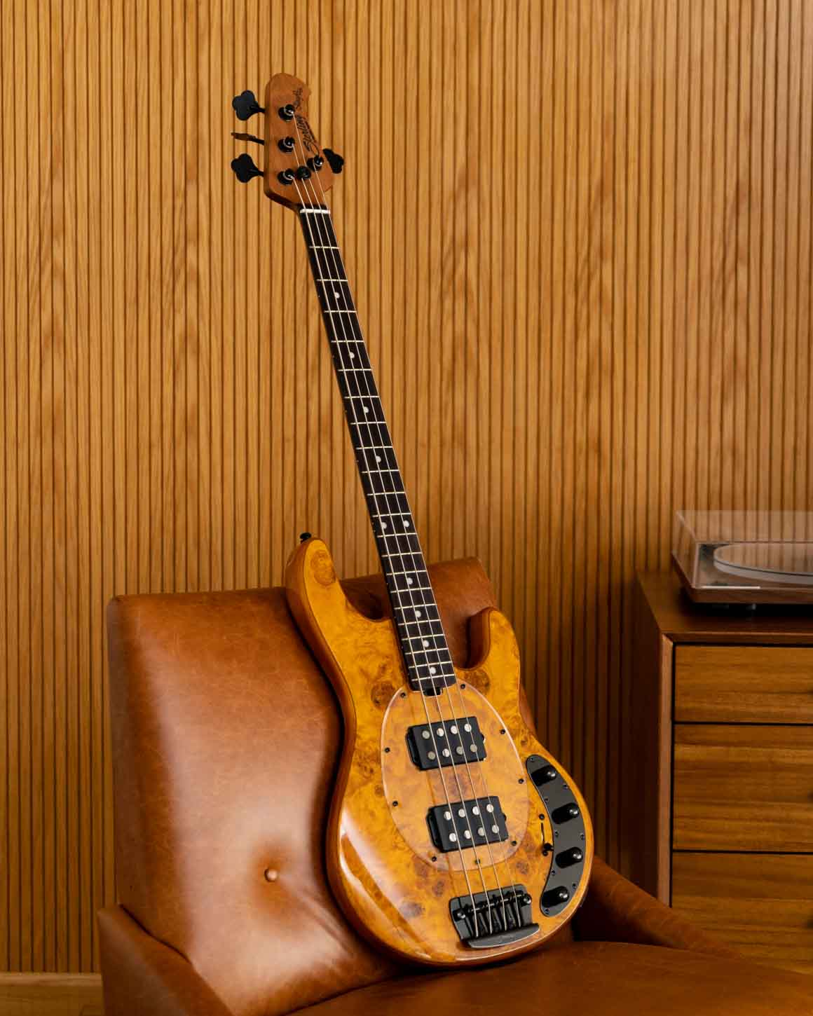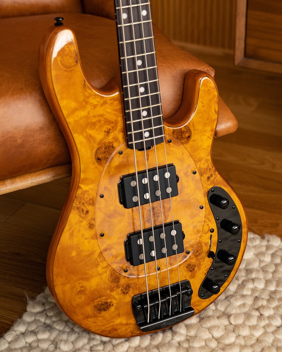 The dual humbucker StingRay Ray34 Poplar Burl bass features two Sterling by Music Man-designed pickups, a roasted maple neck, and a 3-band active preamp — delivering the signature big and bold StingRay sound with added tonal versatility. Now available in a decorative Poplar Burl top."}' data-sheets-root="1">The dual humbucker StingRay Ray34 Poplar Burl bass features two Sterling by Music Man-designed pickups, a roasted maple neck, and a 3-band active preamp — delivering the signature big and bold StingRay sound with added tonal versatility. Now available in a decorative Poplar Burl top.